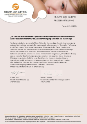 „Die Kraft der Selbstwirksamkeit“ - psychosoziale Lebensberaterin / Counsellor Professional Astrid Fleischmann referiert für die Alzheimervereinigung, Kinderherz und Rheuma-Liga