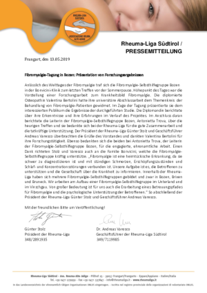 Fibromyalgie-Tagung in Bozen: Präsentation von Forschungsergebnissen