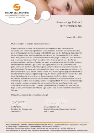 MUT-Foundation unterstützt rheumakranke Kinder