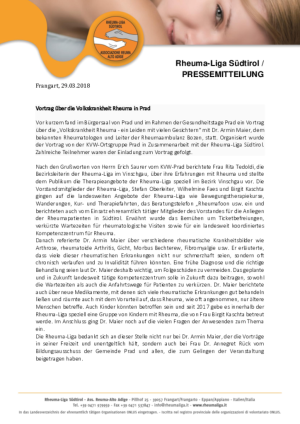 Vortrag über die Volkskrankheit Rheuma in Prad