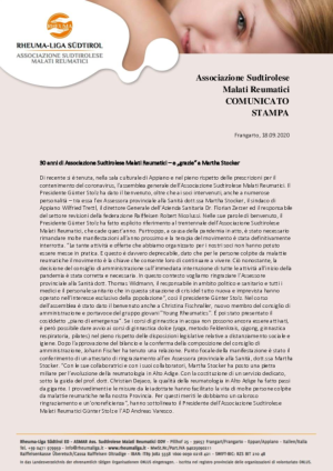 30 anni di Associazione Sudtirolese Malati Reumatici – e „grazie“ a Martha Stocker