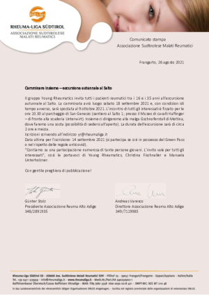 per l'Ass. Rheuma Alto Adige c.f.: 94025090211