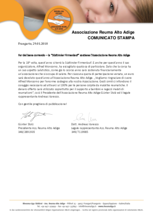 per l'Ass. Rheuma Alto Adige c.f.: 94025090211