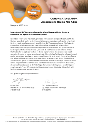 per l'Ass. Rheuma Alto Adige c.f.: 94025090211