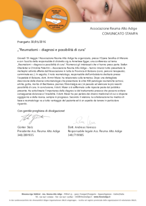 per l'Ass. Rheuma Alto Adige c.f.: 94025090211
