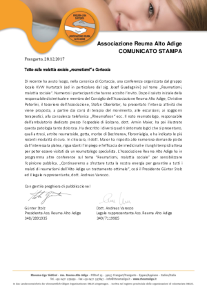 per l'Ass. Rheuma Alto Adige c.f.: 94025090211